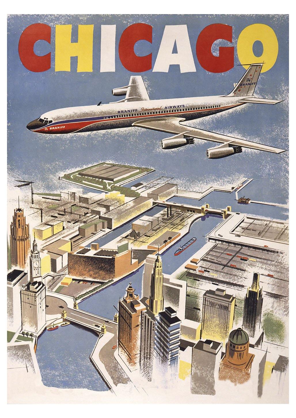 Ein wundervolles Chicago-Reiseplakat aus dem letzten Jahrhundert, reproduziert auf hochwertigem 200 g / m² satiniertem Fotoplakatpapier.