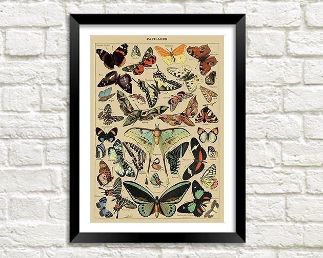 PAPILLONS PRINT: Vintage französische Schmetterlingskunstplakat