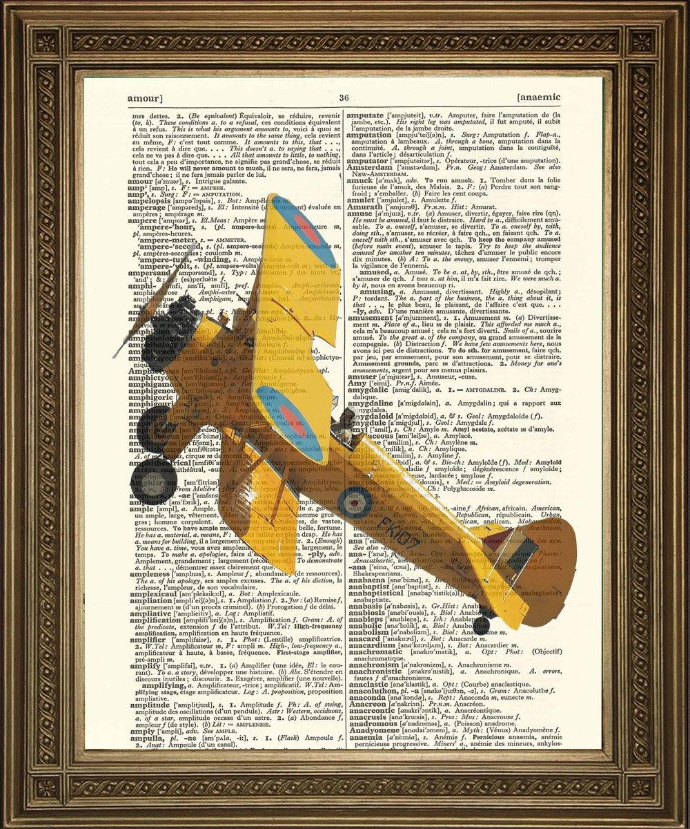 La obra de arte se ha creado utilizando páginas recuperadas de un diccionario antiguo. Por tanto, cada impresión es única, ya que no hay dos páginas iguales.