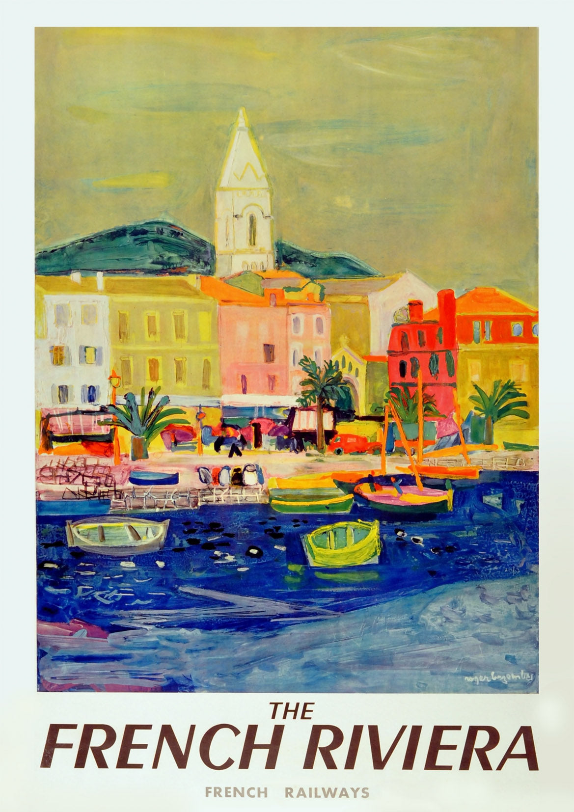 Un hermoso póster de viaje del siglo pasado, esta obra de arte de reproducción Riviera está impresa en papel de póster fotográfico satinado premium de 200 g / m2.