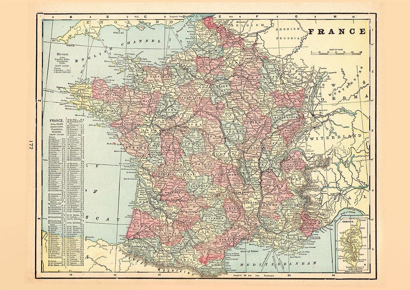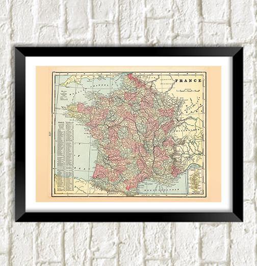 MAPA DE FRANCIA: Vintage Francés Atlas Impresión de arte