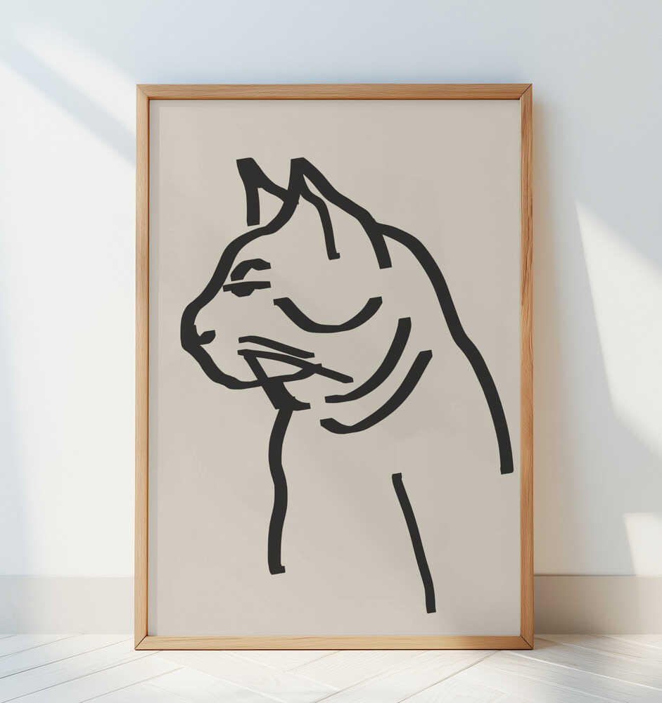 Line Art Cat Drawing by Little Dean - an original artwork produced on premium 210gsm paper, ready for framing.