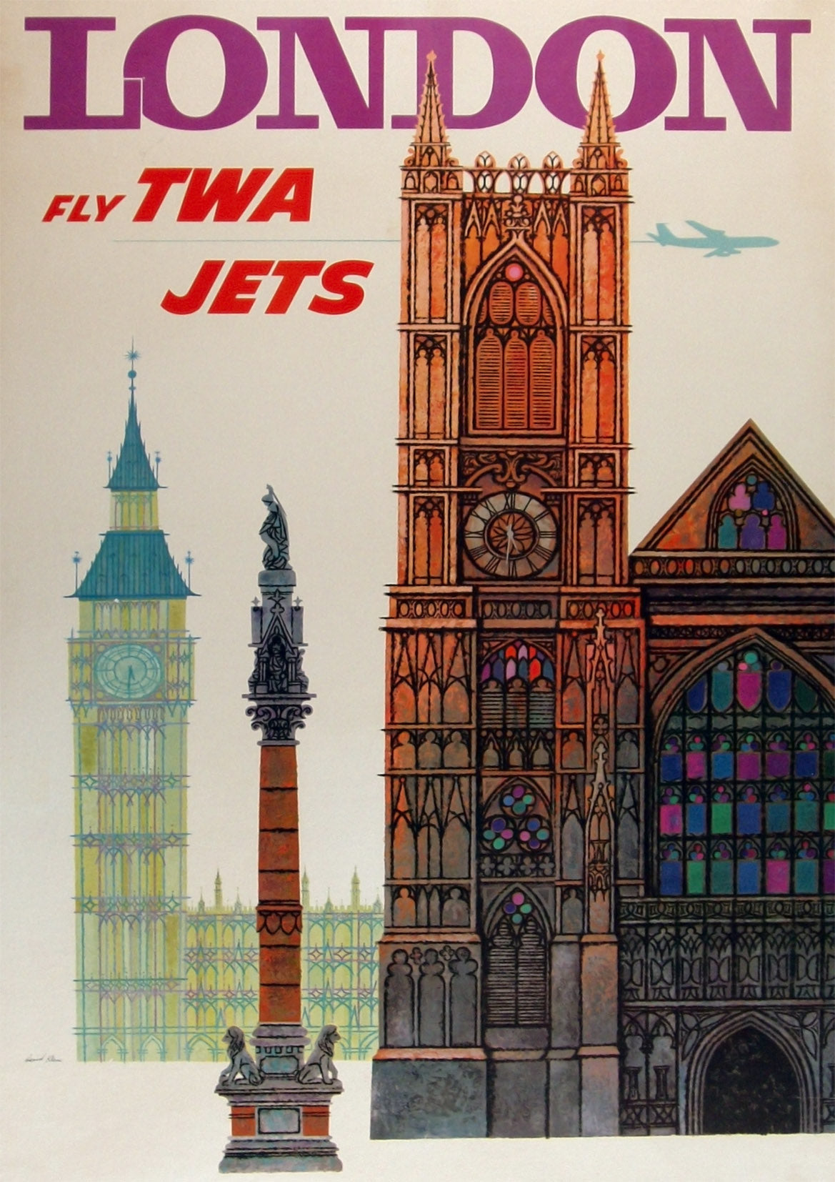 CARTEL DE TURISMO DE LONDRES: Vintage Airline Travel Print