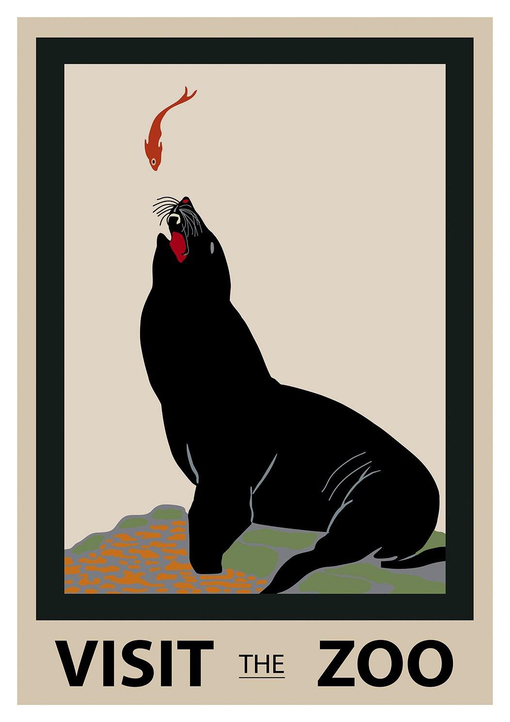 CARTEL DEL ZOO DE LONDRES: Visita el anuncio del león del mar del zoológico