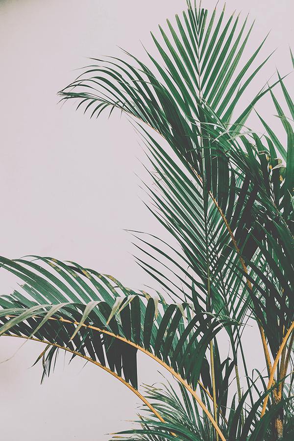 Hermosa fotografía de hojas de palmera sobre un fondo malva, impresa en papel satinado de alta calidad de 200 g / m2 para capturar la gama completa de sombras y detalles.