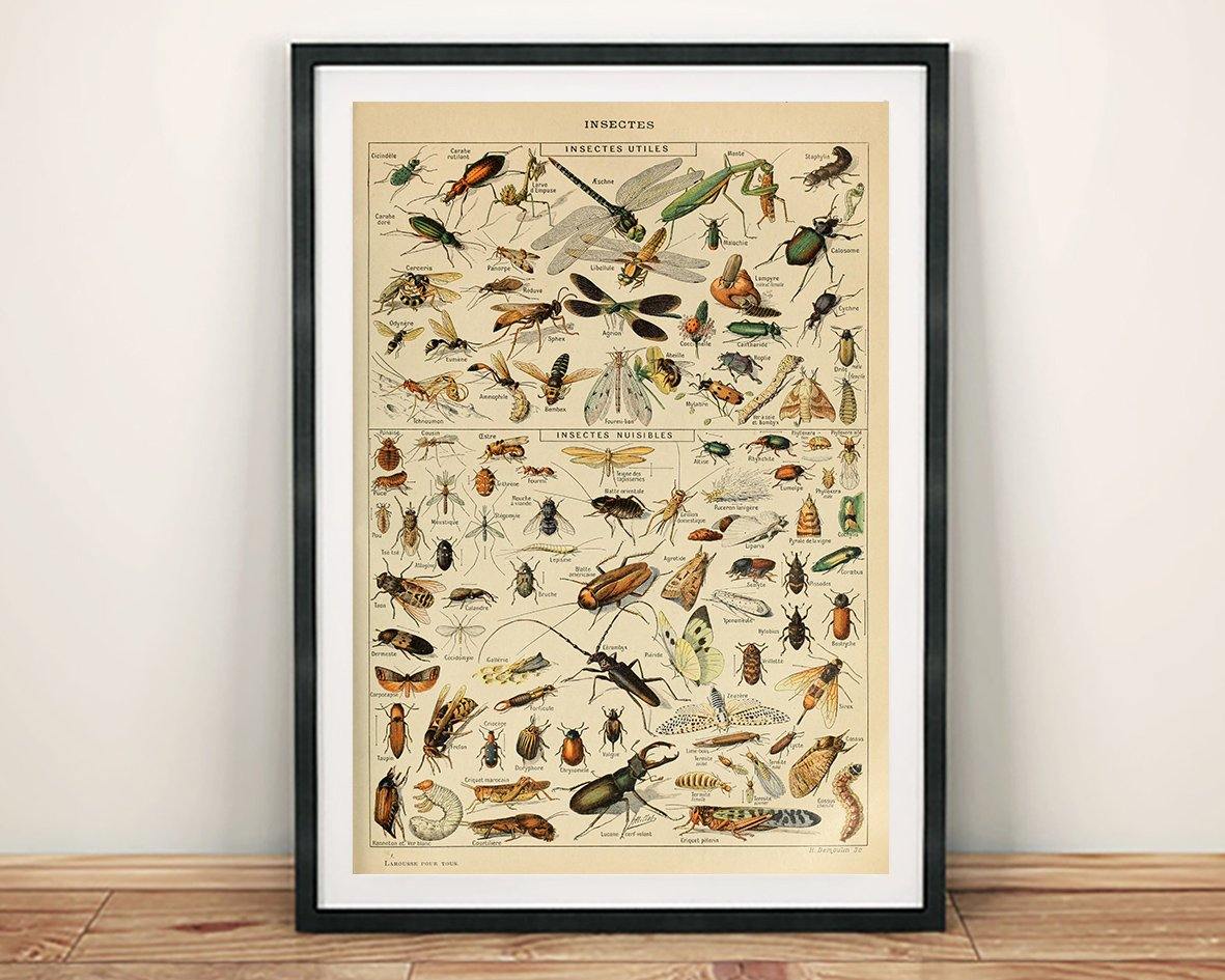 CARTEL DE INSECTOS VINTAGE: Lámina francesa de Millot