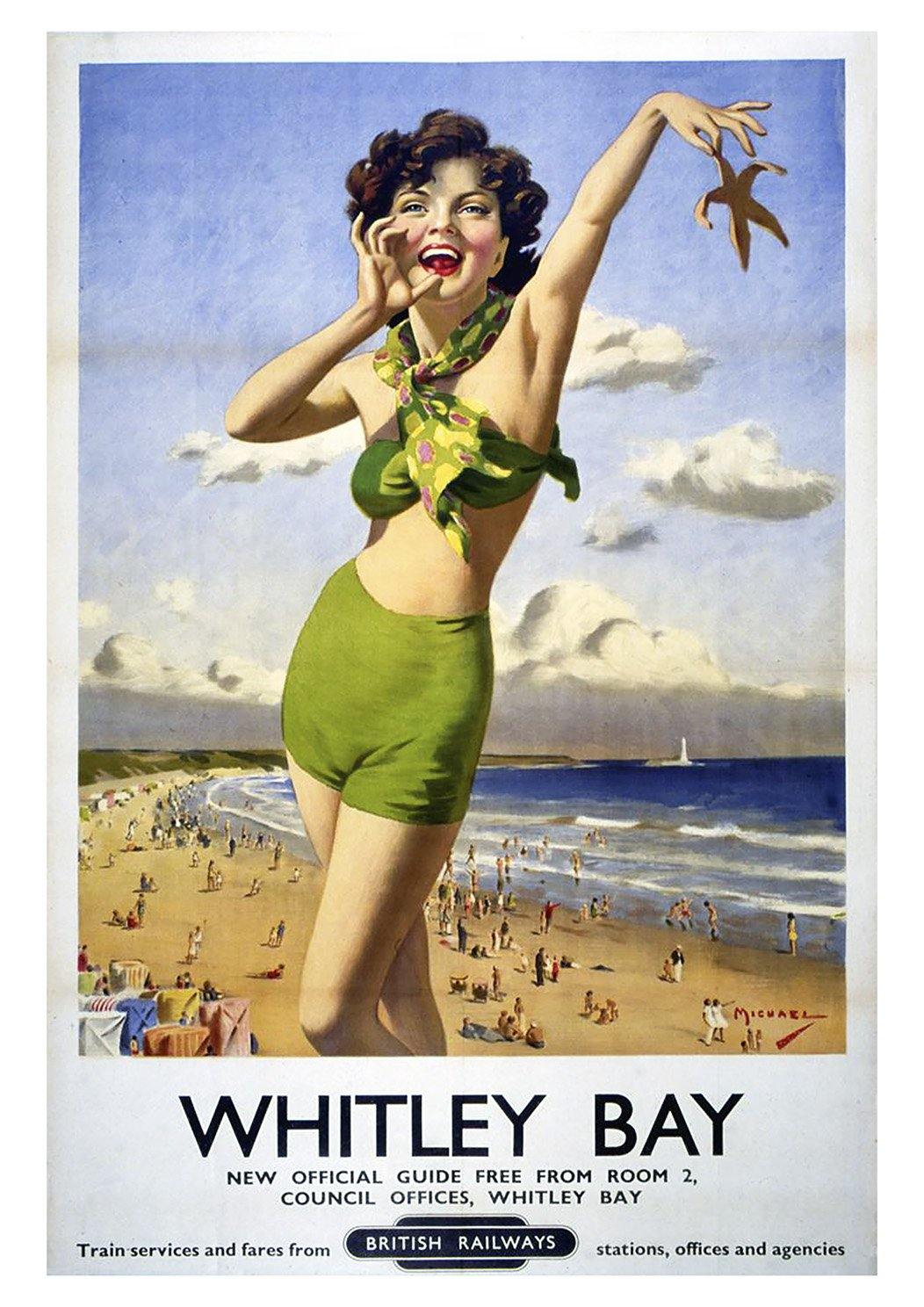 WHITLEY BAY POSTER: Anuncio de vacaciones en la costa vintage