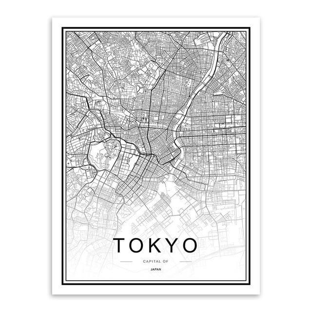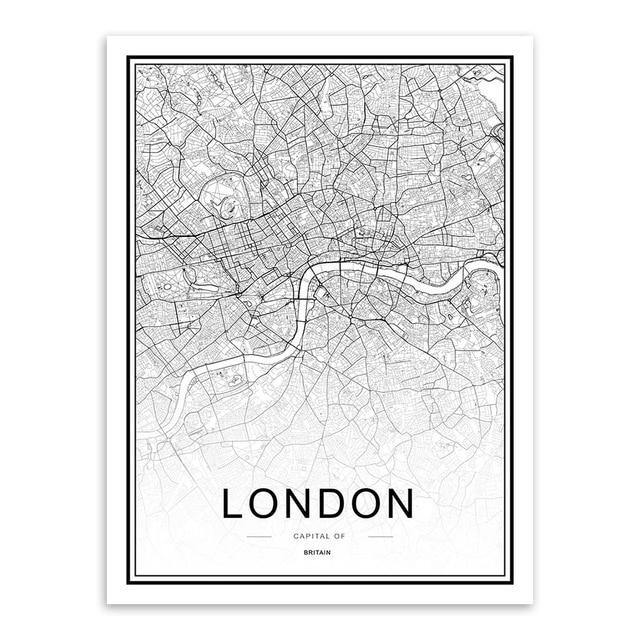 Una selección de elegantes mapas en blanco y negro, con las principales ciudades del mundo. Impreso en lienzo de algodón de 280 g / m2 de alta calidad, listo para enmarcar o colgar en la pared.