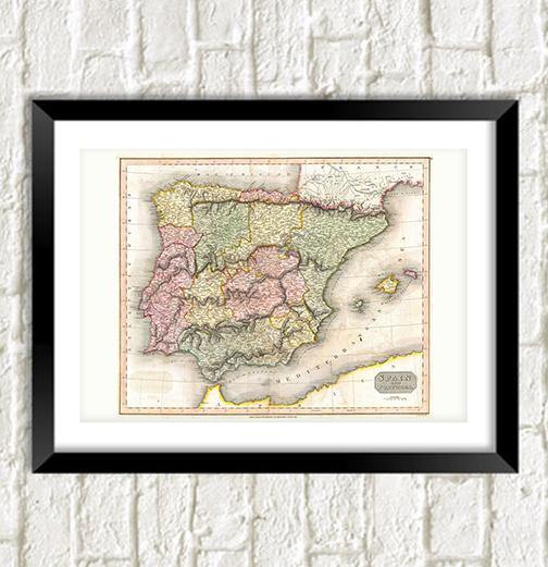 Carte IBERIA: Atlas vintage d'Espagne et du Portugal Impression artistique