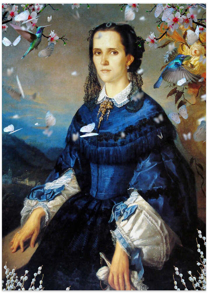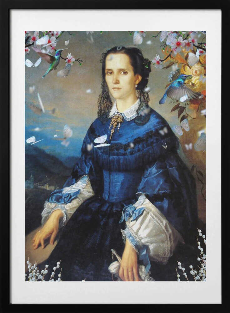 Lady Blue Hummingbird Blooms by Sue Skellern - an original artwork, printed on premium 210gsm paper, ready for framing. This art is sure to be a talking point in the room!