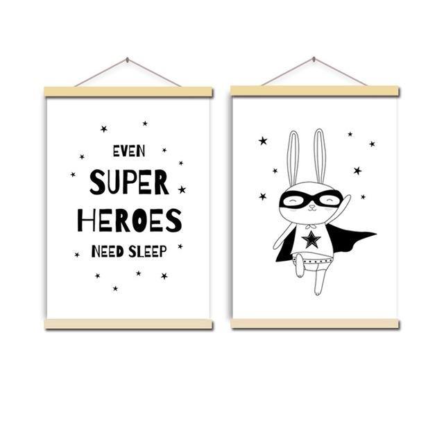 Anche i supereroi hanno bisogno di dormire, incluso questo simpaticissimo coniglietto. Ideali per la cameretta di un bambino piccolo, questi disegni monocromatici ad alta risoluzione sono stampati su tela di cotone di alta qualità da 280 g / mq, pronti per essere incorniciati o appesi in casa.