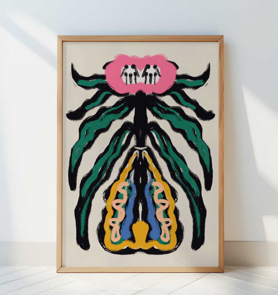 Symmetrical Design with a Pink Flower - Art Print by Little Dean