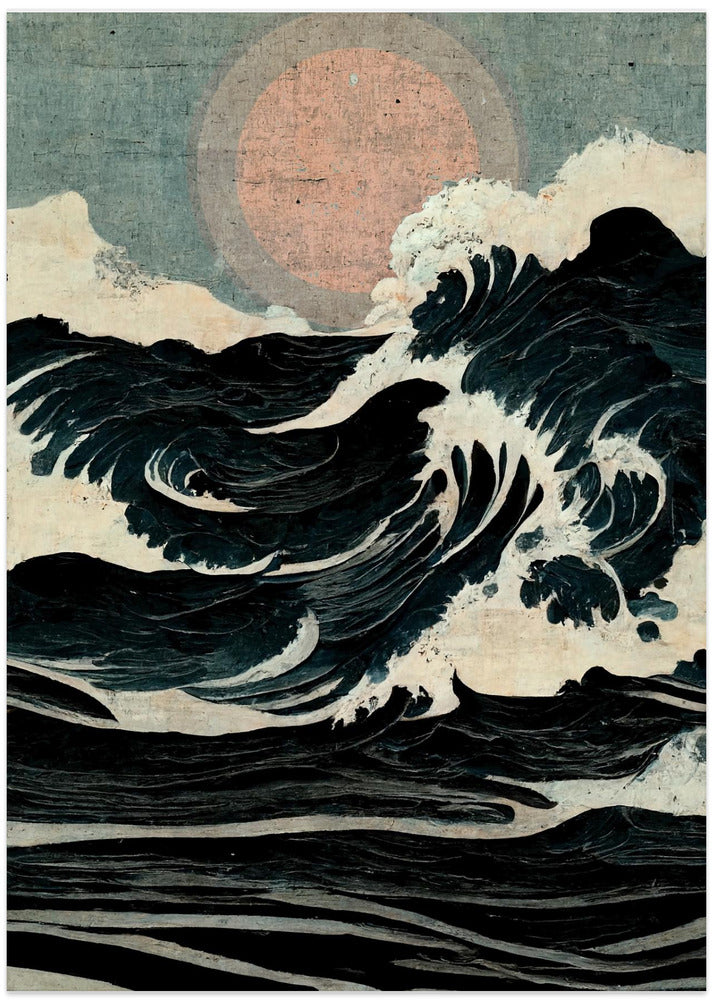 Celestial Wavescape by Treechild - an original artwork, printed on premium 210gsm paper with white border. Prints in this collection celebrate the unique culture of Japan and the Orient, and the legacy of old masters. Photographs and posters are printed on satin paper; other artworks are on matte.