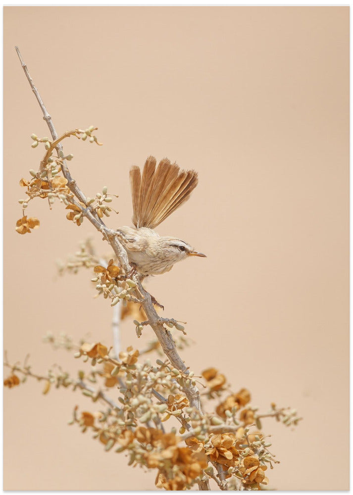 Scrub Warbler by Shlomo Waldmann - an original artwork, printed on premium 210gsm paper with white border. Prints in this collection celebrate the unique culture of Japan and the Orient, and the legacy of old masters. Photographs and posters are printed on satin paper; other artworks are on matte.