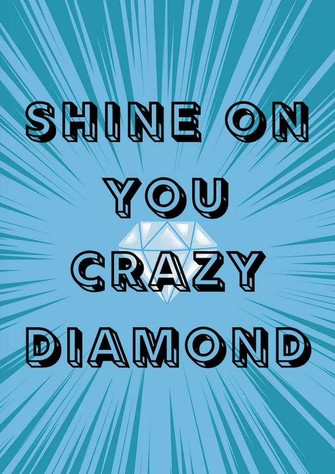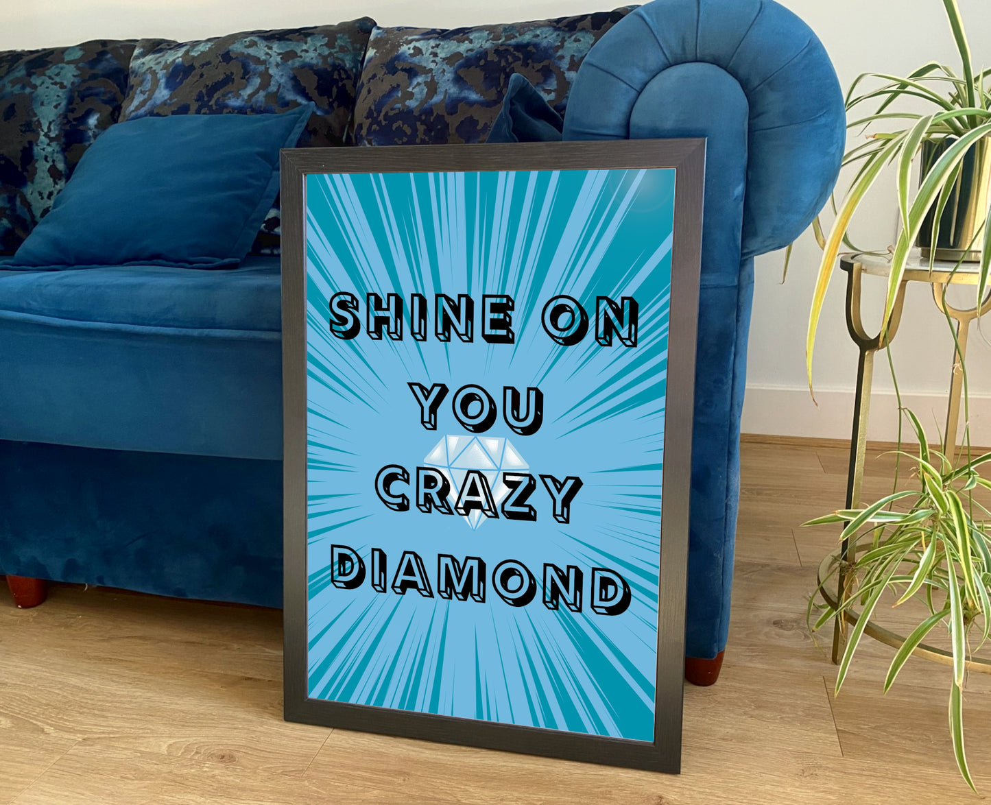 Inspired by the song lyric, this 'Shine on You Crazy Diamond' poster will bring loads of positive vibes, as well as some retro glamour to your home. Artwork is printed on premium 200gsm satin paper.