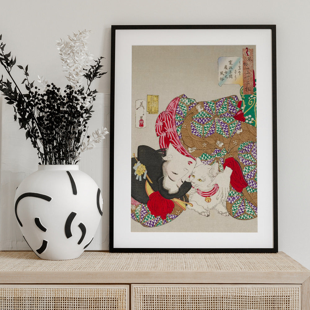 Woman With Pet Kansei Era (1888) By Tsukioka Yoshitoshi by Tsukioka Yoshitoshi - an original artwork, printed on premium 210gsm paper with white border. Prints in this collection celebrate the unique culture of Japan and the Orient, and the legacy of old masters. Photographs and posters are printed on satin paper; other artworks are on matte.
