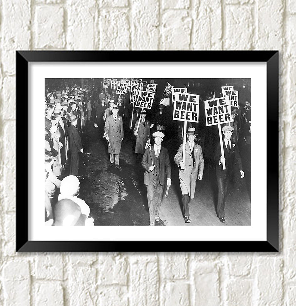 A vintage photograph men marching for beer, printed on premium 200gsm satin paper.
