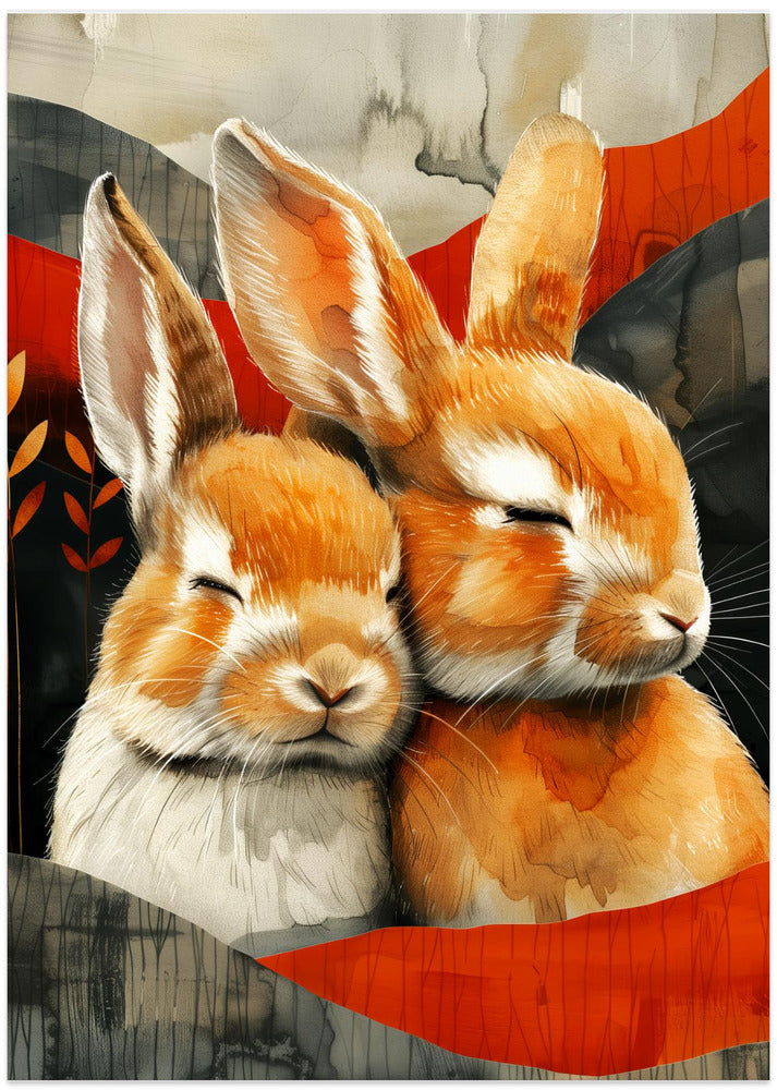 Bunny watercolor animal art 3 by Justyna Jaszke - an original artwork, produced on premium 210gsm paper with white border, ready for framing and to look awesome in your home.