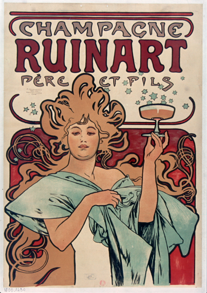 CHAMPAGNE POSTER: Vintage Ruinart Art Print by Alphonse Mucha
