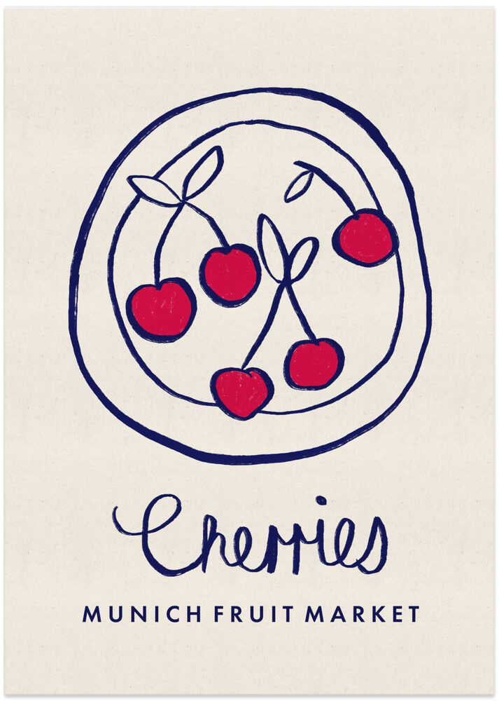 Cherries Munich Food Market Germany by Dirkie Nell - an original artwork, printed on premium 210gsm paper, ready for framing. This art is sure to be a talking point in the room!