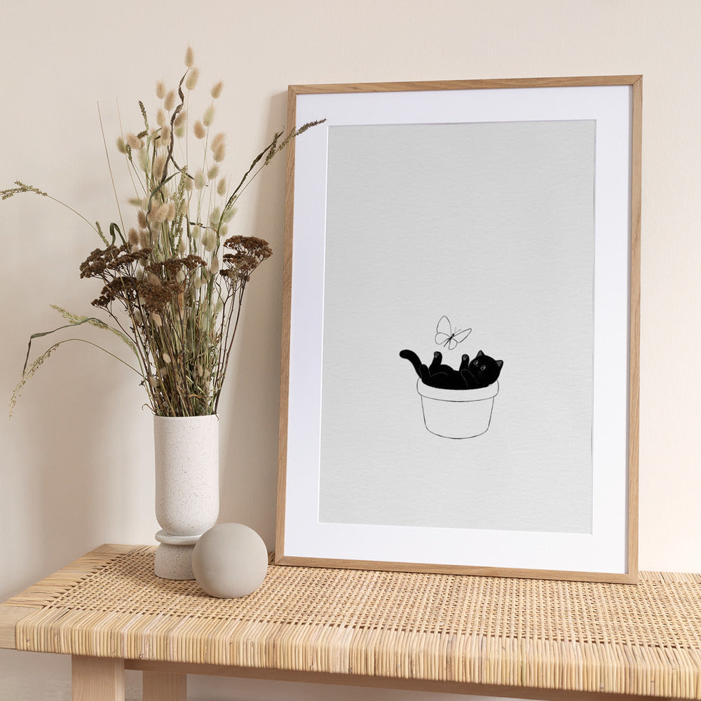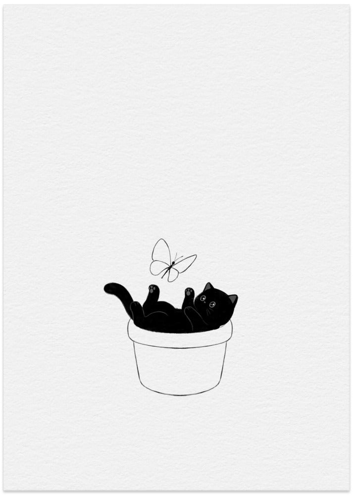Cute Black Cat by Xuan Thai - an original artwork, produced on premium 210gsm paper with white border, ready for framing and to look awesome in your home.