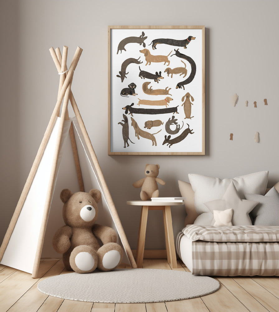 Dachshund Print by Hanna Melin - an original artwork, produced on premium 210gsm paper with white border, ready for framing and to look awesome in your home.