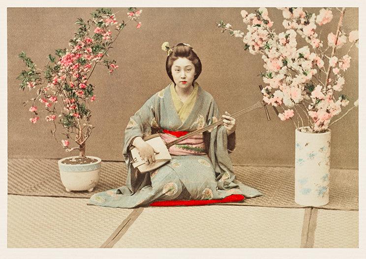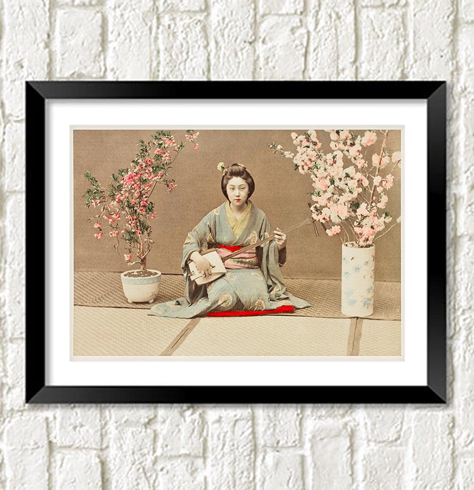 GEISHA ART PRINT: Vintage Japanese Geisha Playing Samisen Artwork