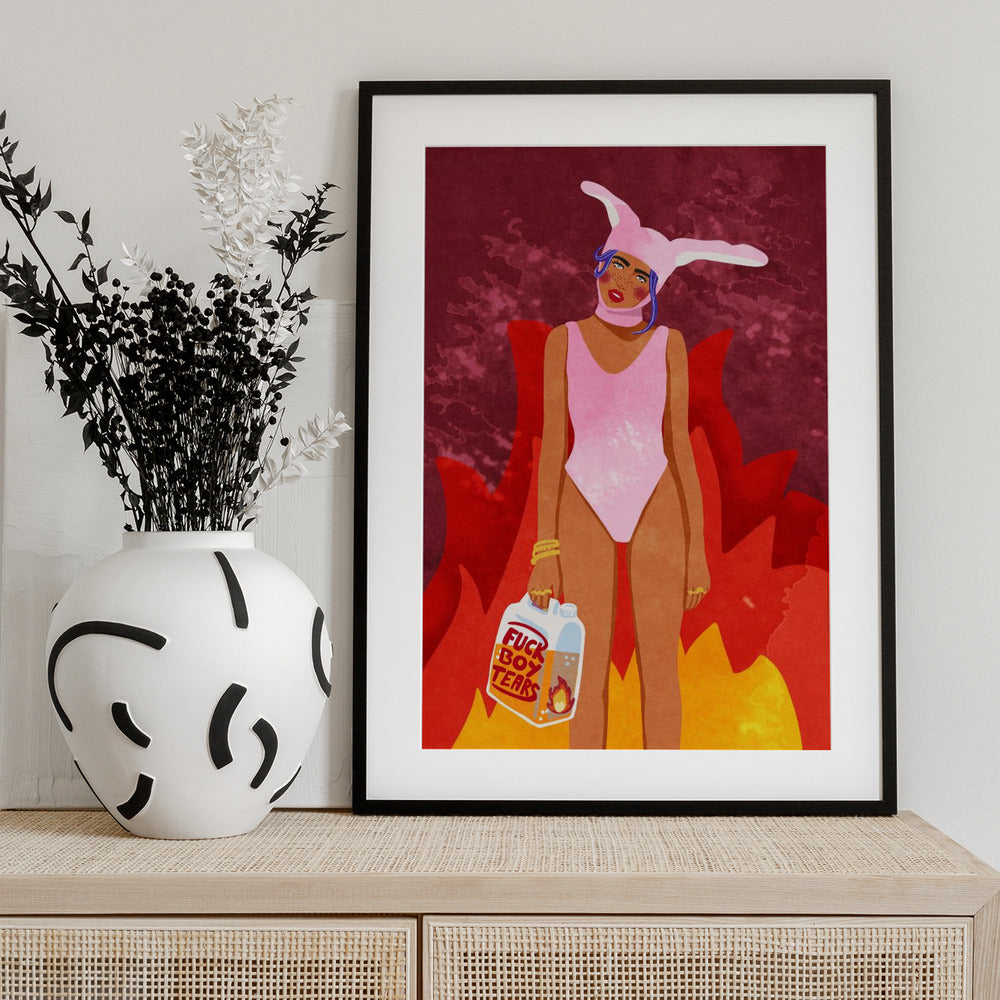 Girl On Fire by Raissa Oltmanns - an original artwork, printed on premium 210gsm satin paper with white border to make the colours pop!