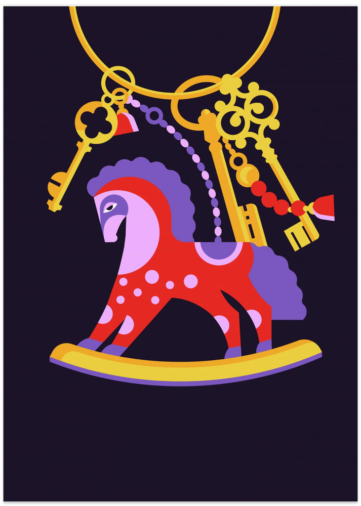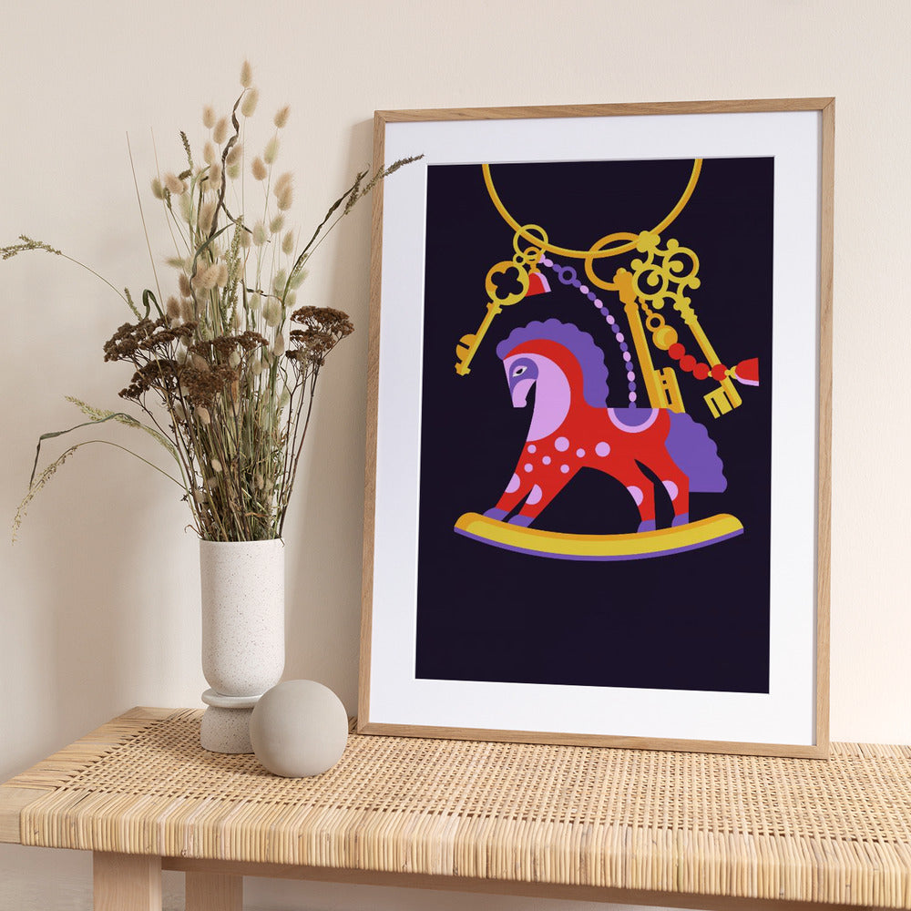 Horsy Toy Playful Simple Deco Illustration For Kids by Tetiana Kava Illustration - an original artwork, produced on premium 210gsm paper with white border, ready for framing and to look awesome in your home.