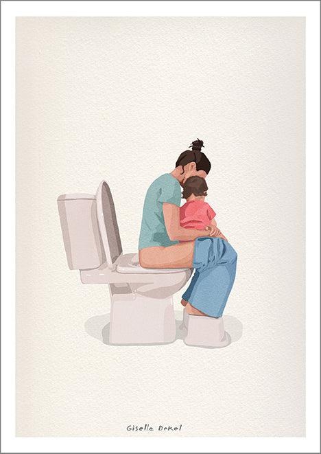 A mum and daughter share an intimate moment together - on the toilet! This is an original artwork by renowned illustrator, Giselle Dekel. Prints are produced on 210gsm matte art paper, ready for framing or hanging.
