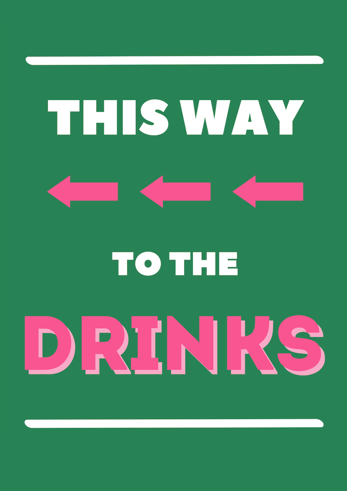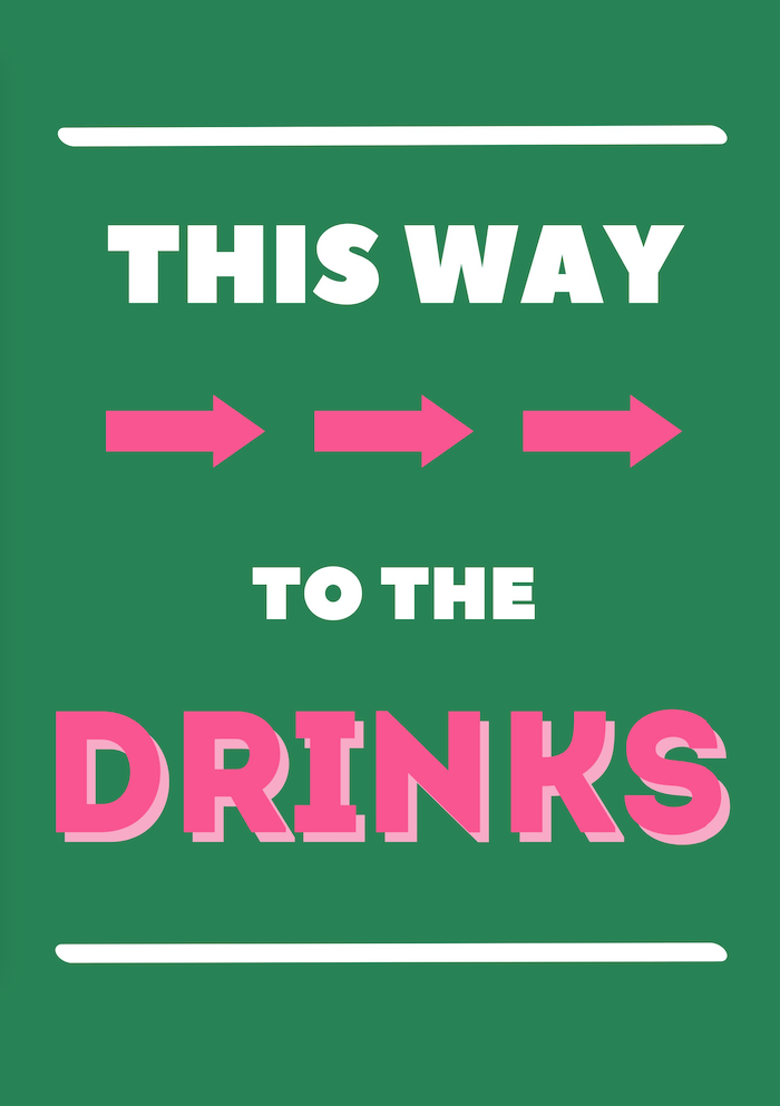 A fun poster for the home, bar, pub or party venue, signposting people to where the drinks are. Artwork is produced on premium 200gsm satin paper.