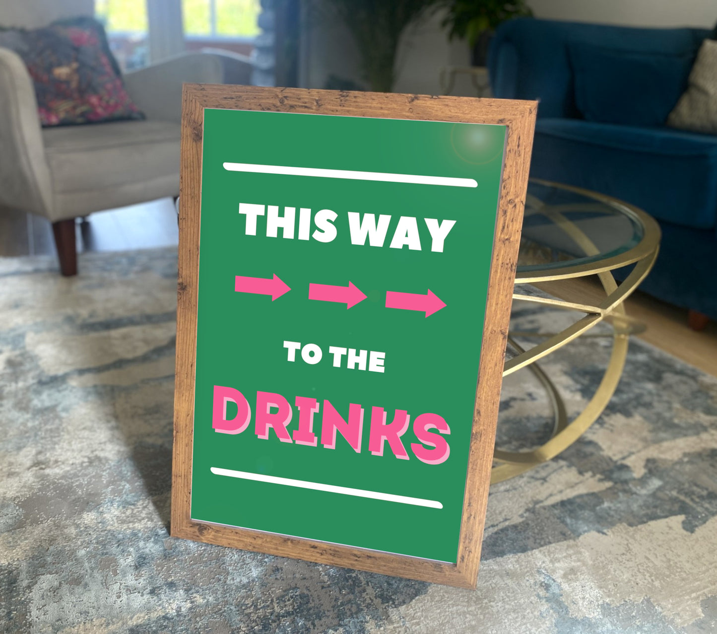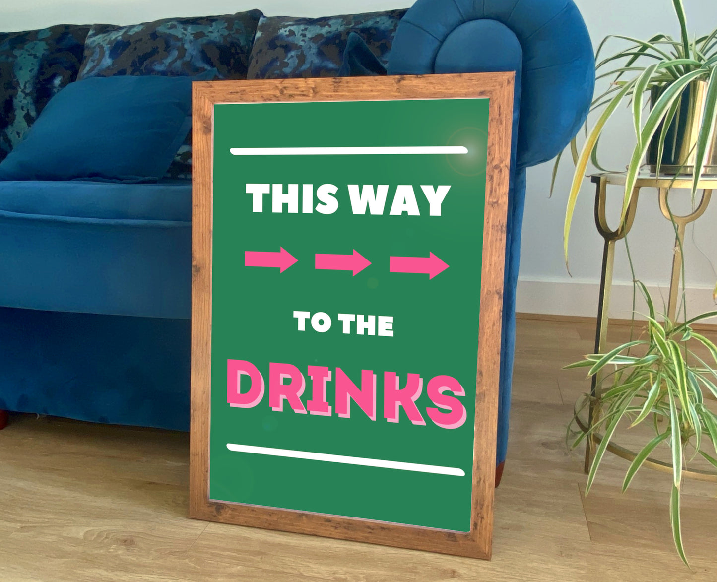 PARTY POSTER: This Way to the Drinks, Kitchen or Living Room Bar Art Print