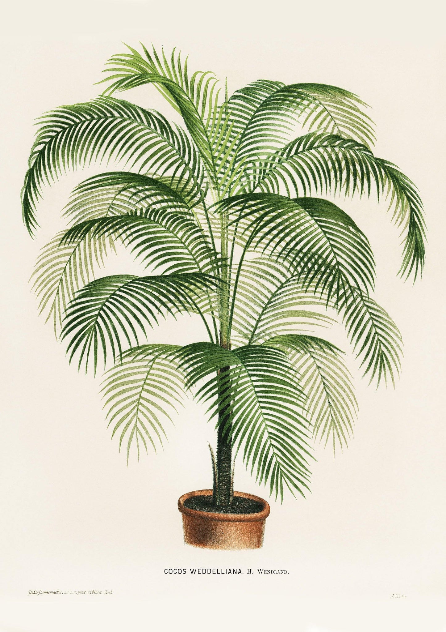 POTTED FERN PRINT: Cocos Weddelliana Lithograph