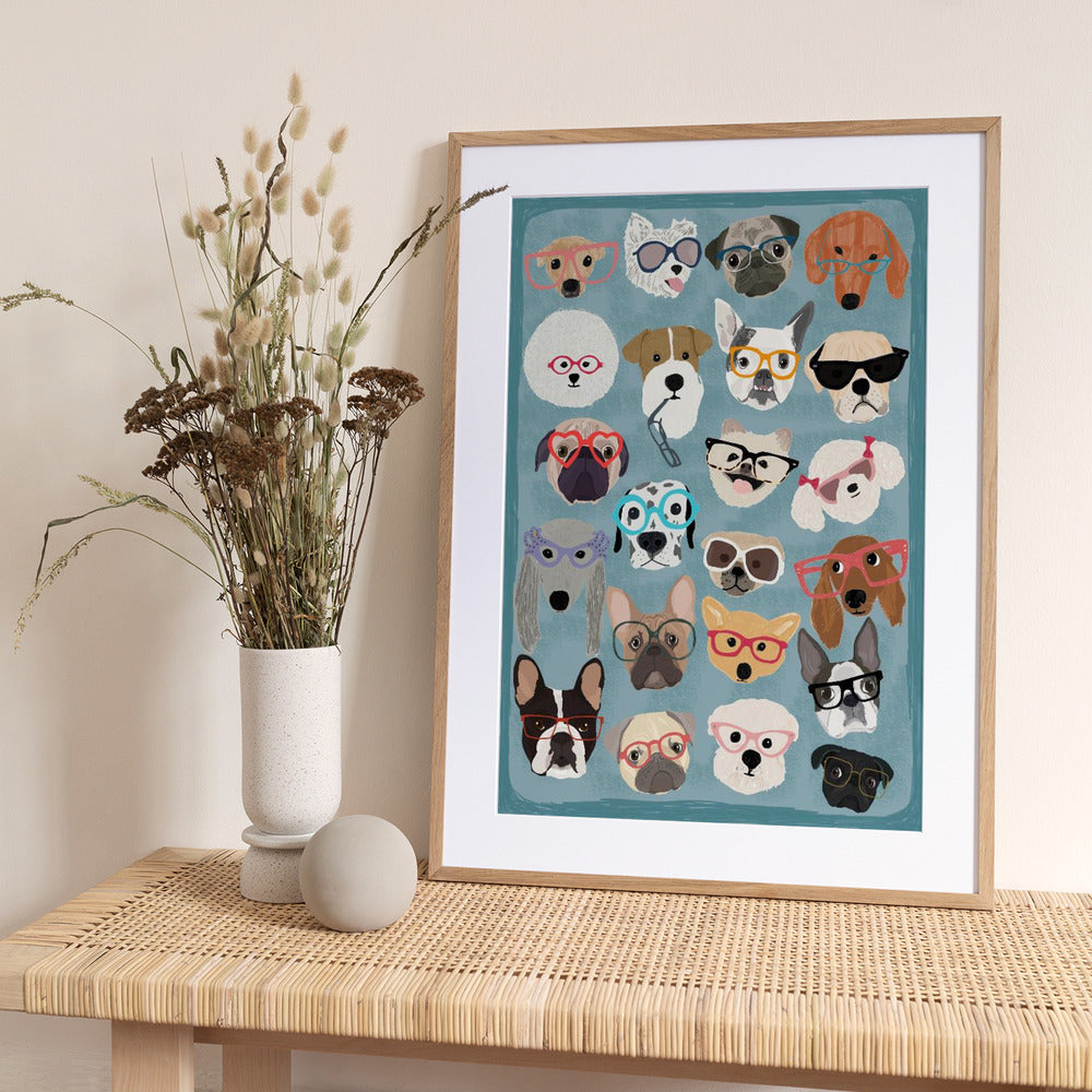 Puzzle Dogs In Glasses by Hanna Melin - an original artwork, produced on premium 210gsm paper with white border, ready for framing and to look awesome in your home.