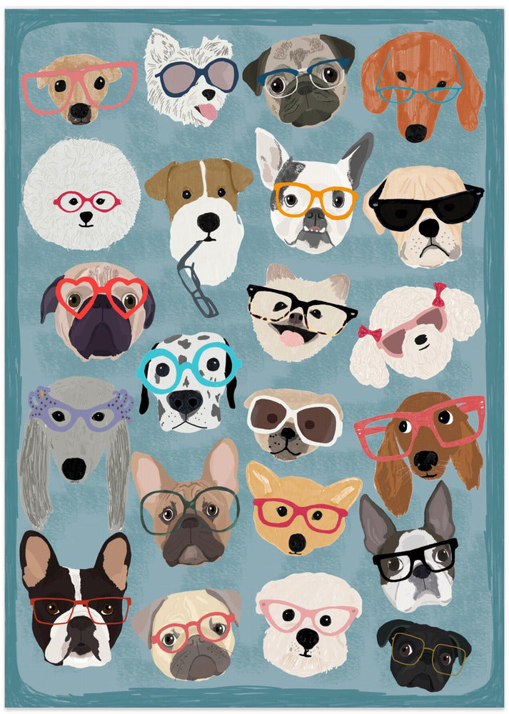 Puzzle Dogs In Glasses - Art Print by Hanna Melin