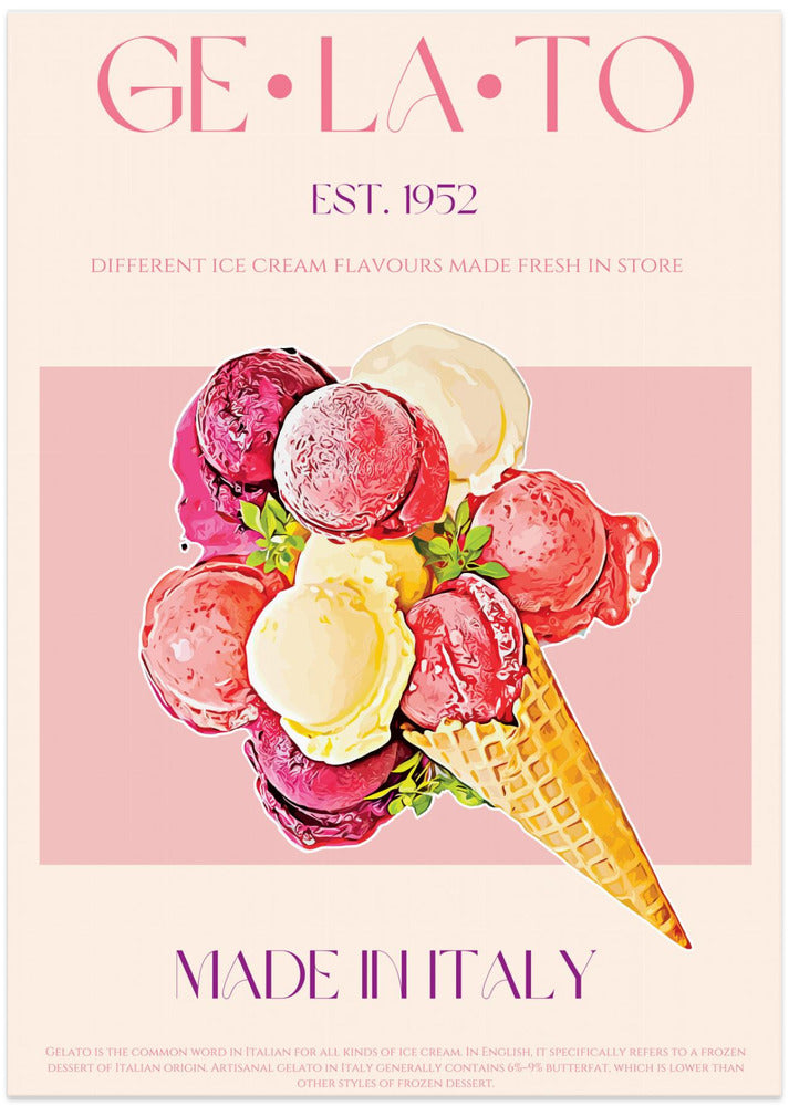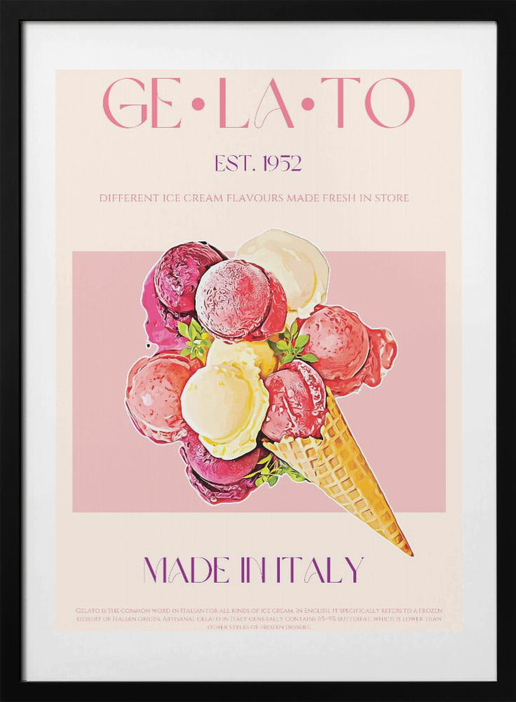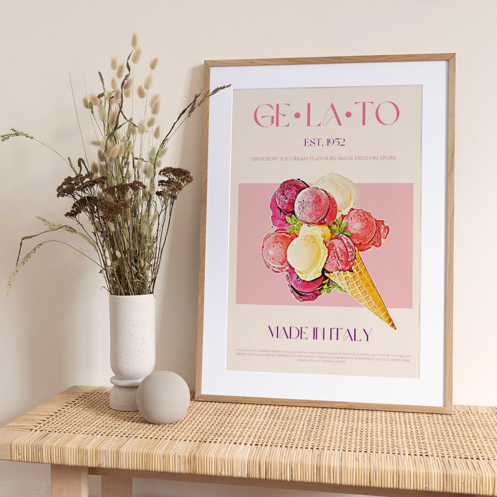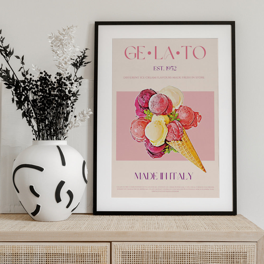 Vintage Style Gelato Poster by Nazma Khokhar - an original artwork, produced on premium 210gsm paper with white border, ready for framing and to look awesome in your home.