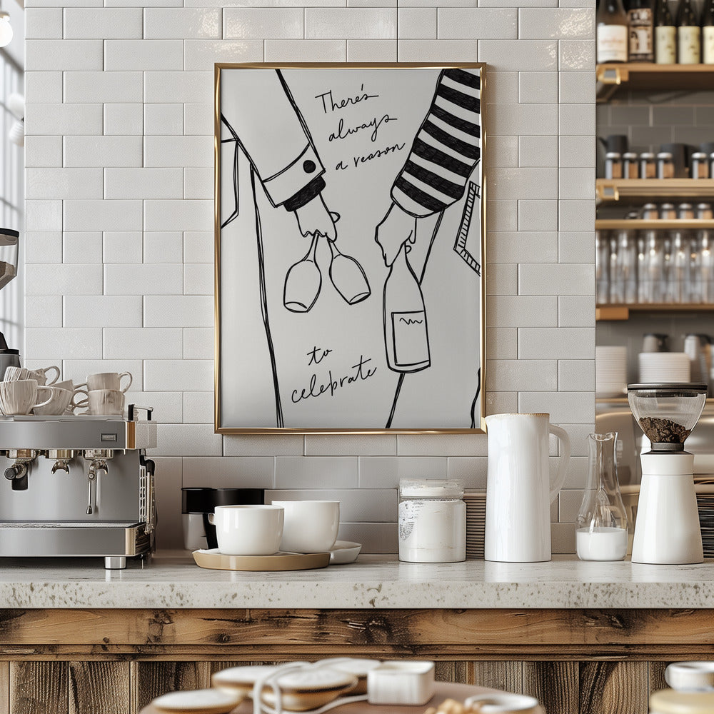 Woman holding wine bottle and wine glass (Black & White) - Wine Vin Femme Noir et Blanc - Art Print by Rio Soléy